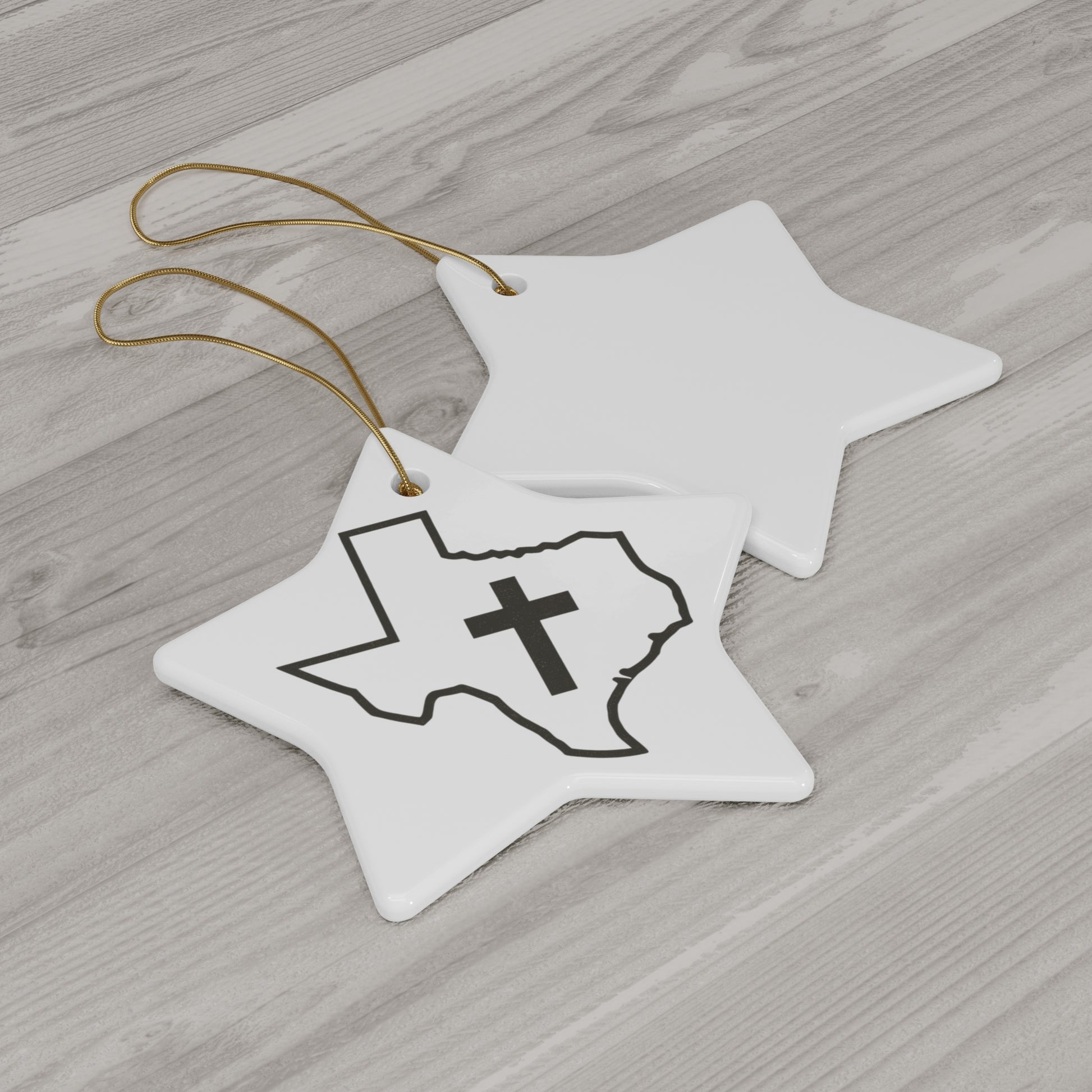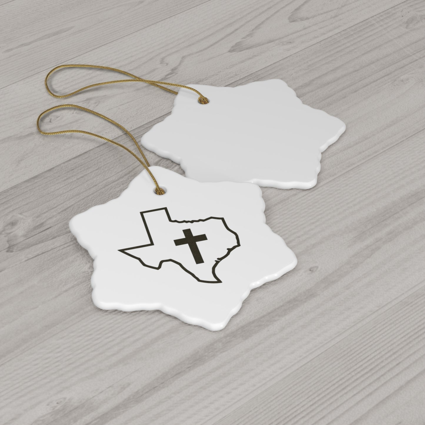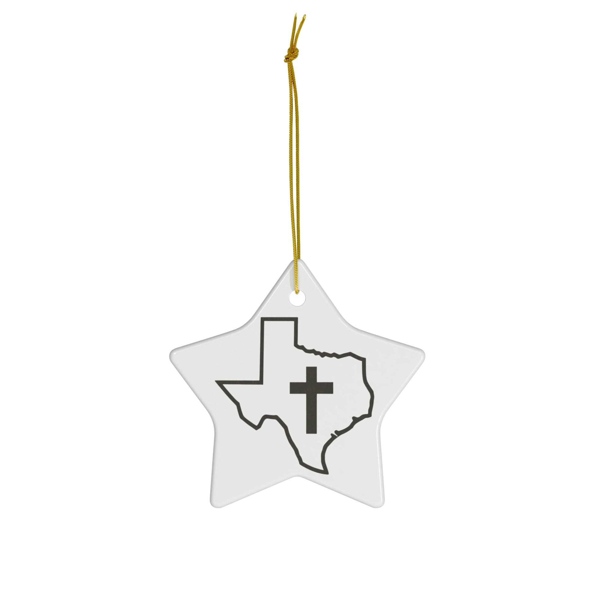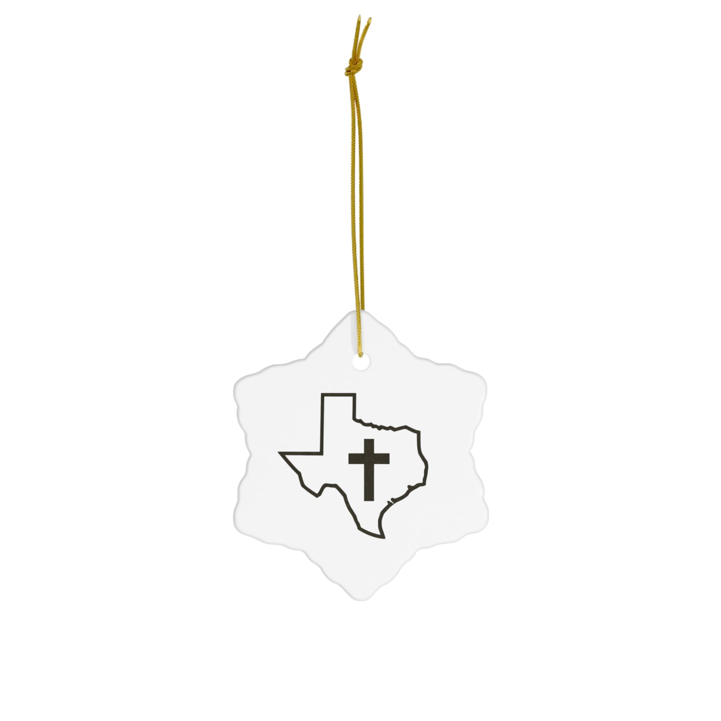 Christian Texas Ceramic Christmas Ornament .: 0.125" (3mm) thick high-quality ceramic .: Glossy finish .: Available in 4 shapes - Snowflake, Star, Heart and Circle .: One-sided print .: Hole and gold-toned hanging string included .: The height of the hole can slightly deviate .: NB! Each pack contains a single ornament .: NB! For better printing results, please avoid intricate designs. Due to the small scale of the ornament, small texts and high-detail designs may turn out blurry