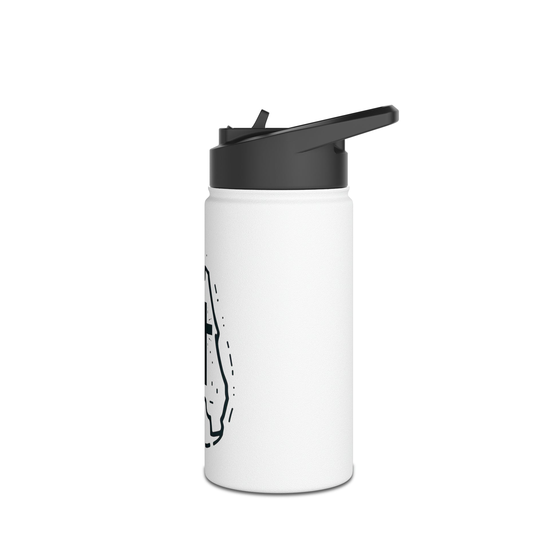 Florida Christian Cross Water Bottle. Available in 3x sizes (12oz, 18oz, 32oz) this water bottle features a double-wall stainless steel build that keeps your drinks frosty for 24h and soothingly hot for 12h. This BPA-free, steel water bottle comes with a twist-on lid for easy sipping, making it excellent for daily use at work, at college, in the car, and beyond.