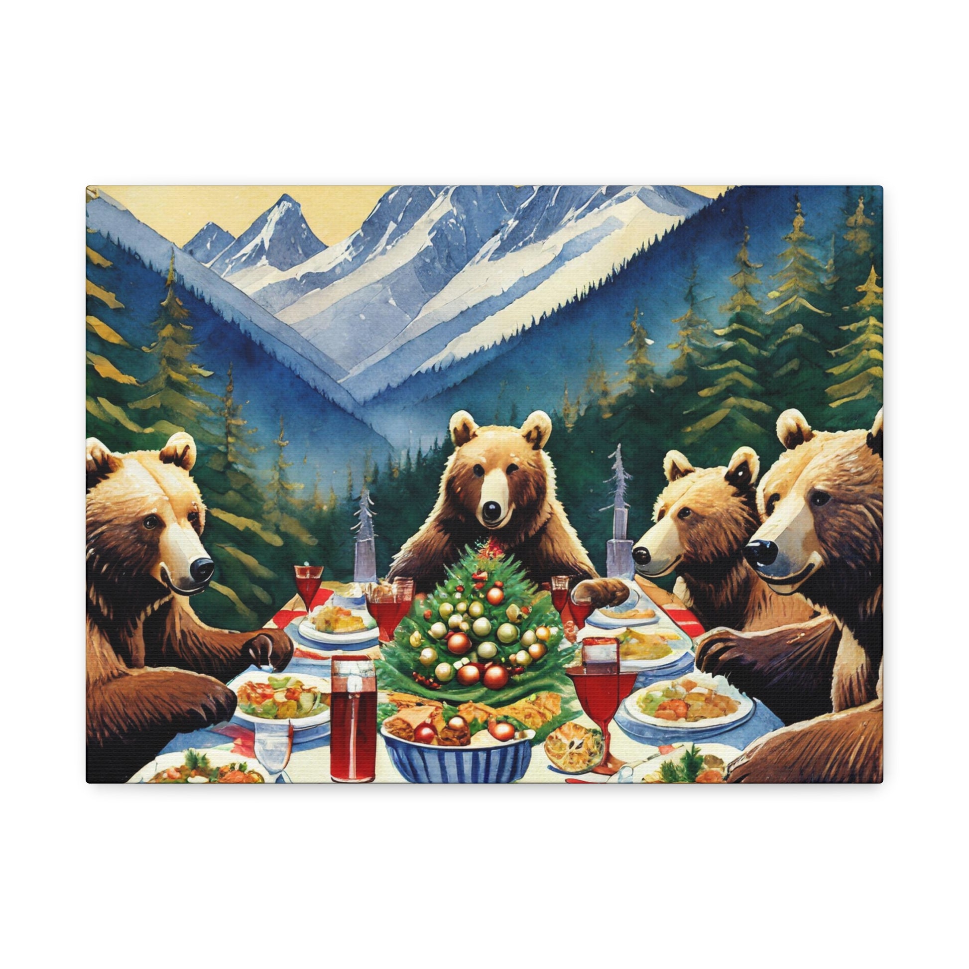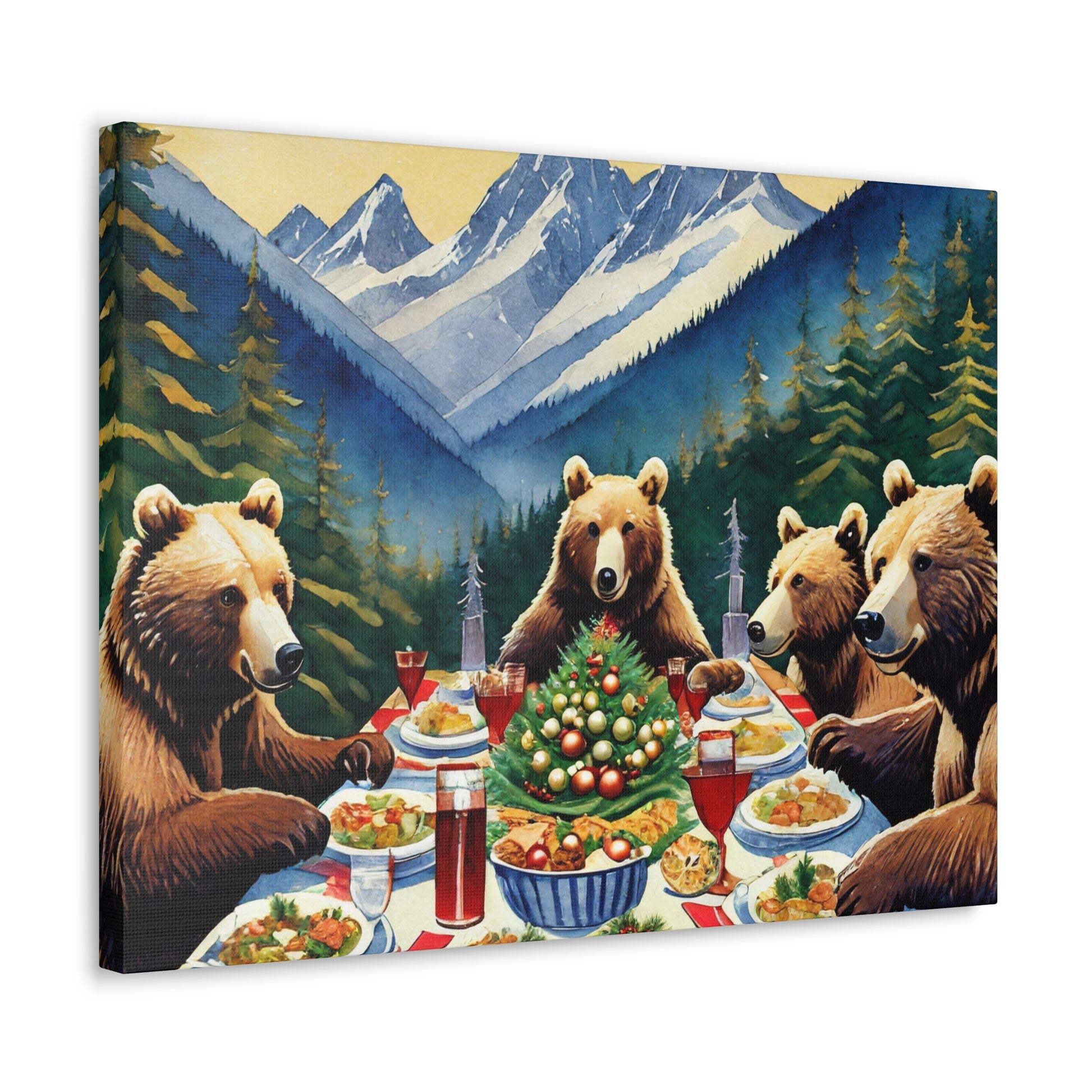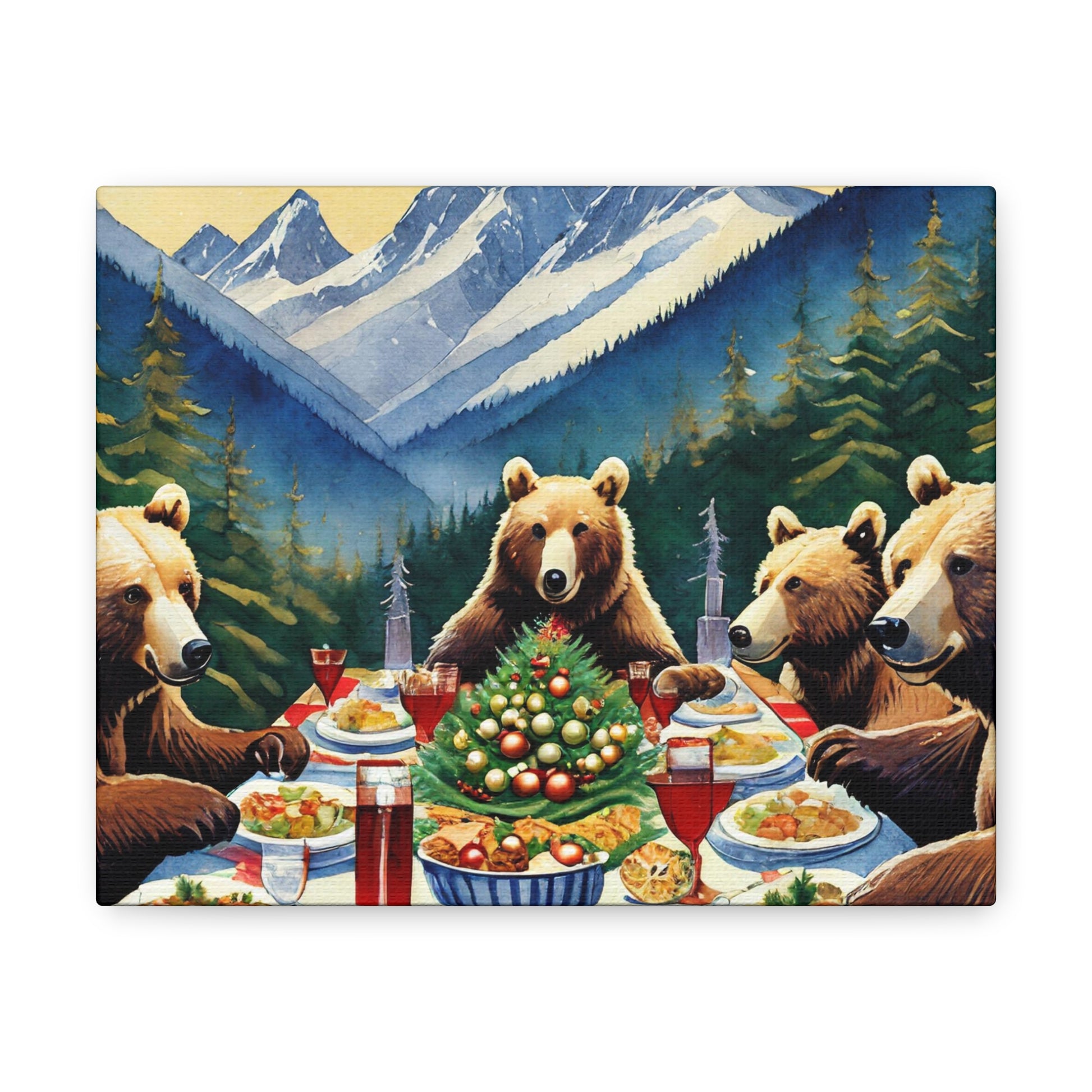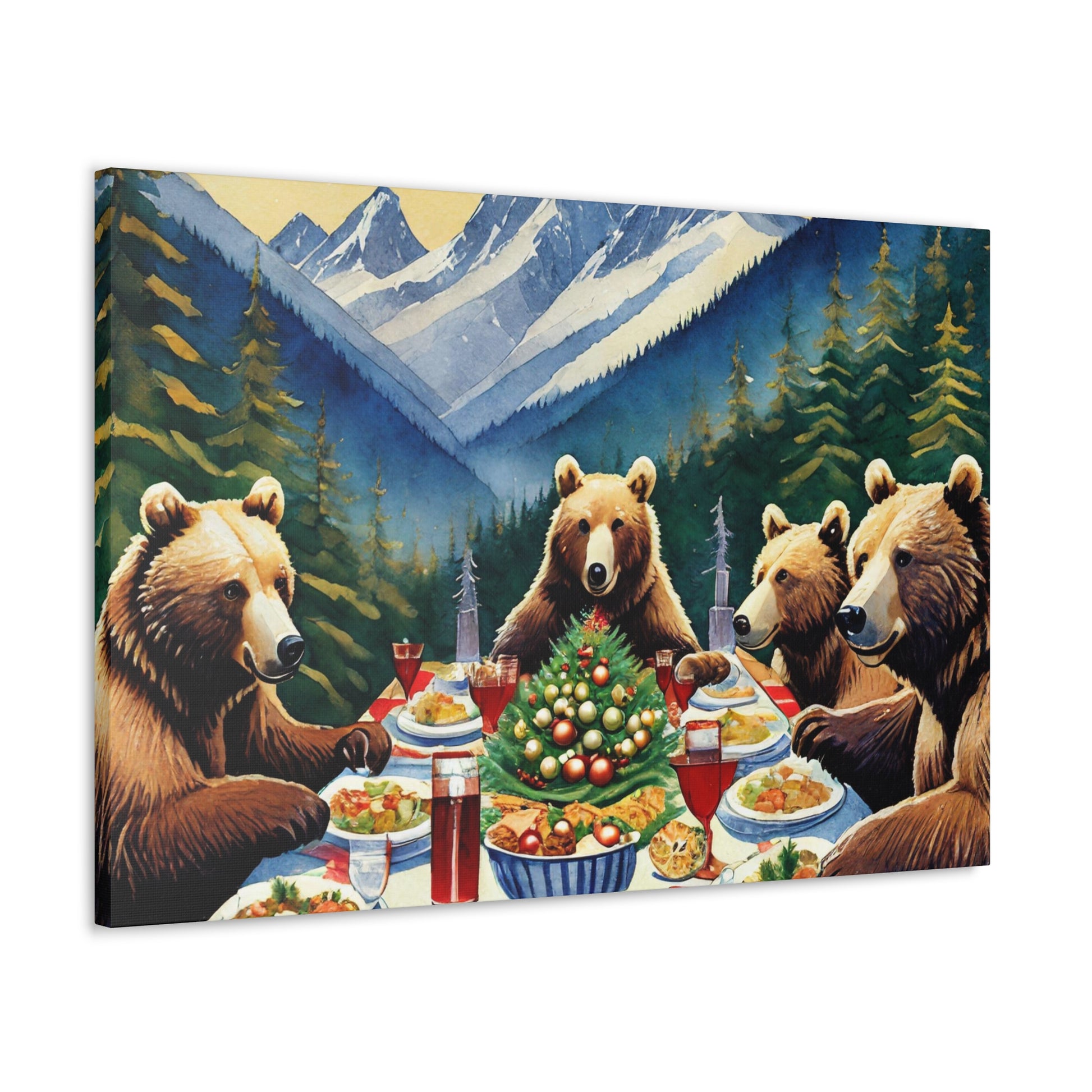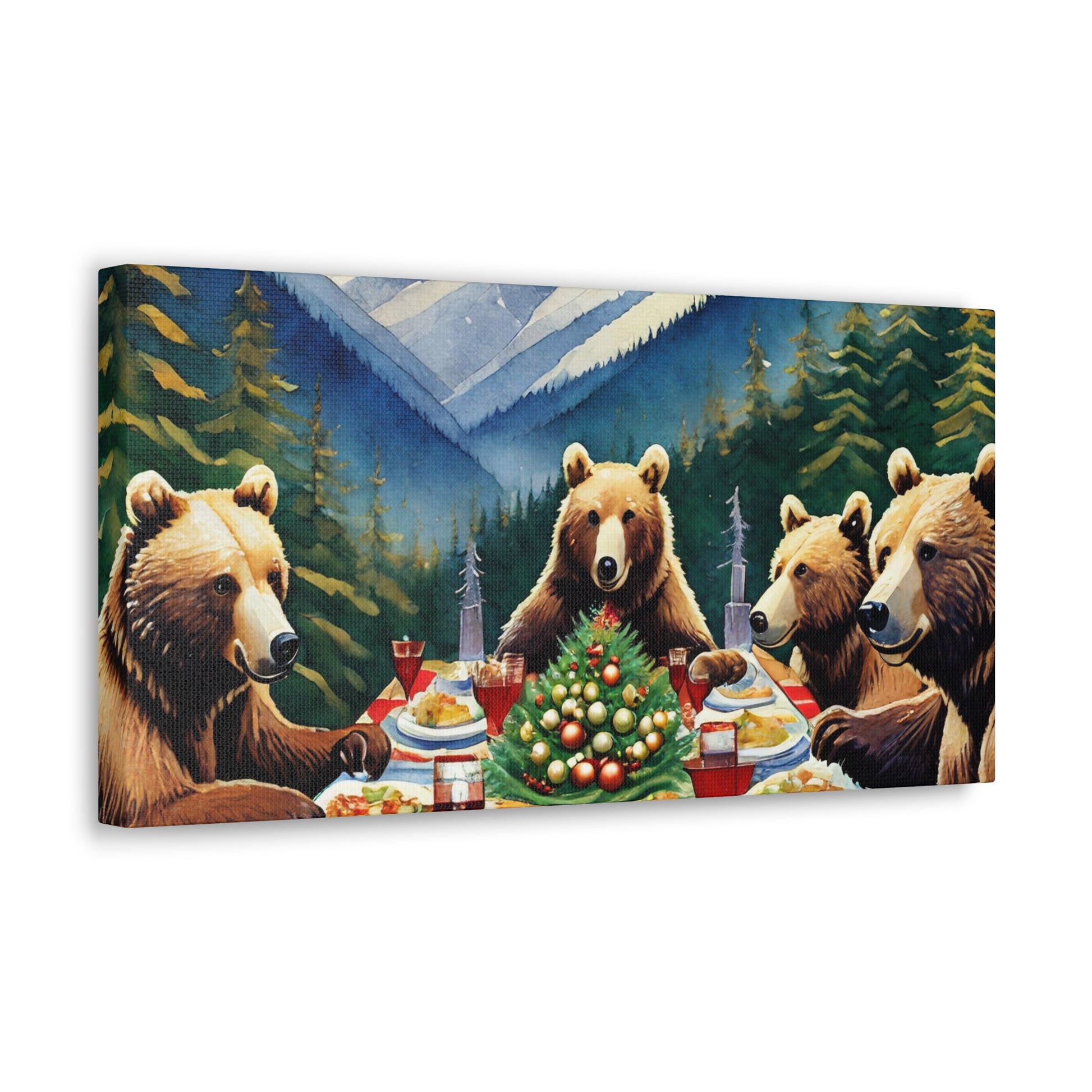Grizzly Bear Christmas Dinner Canvas Wrap