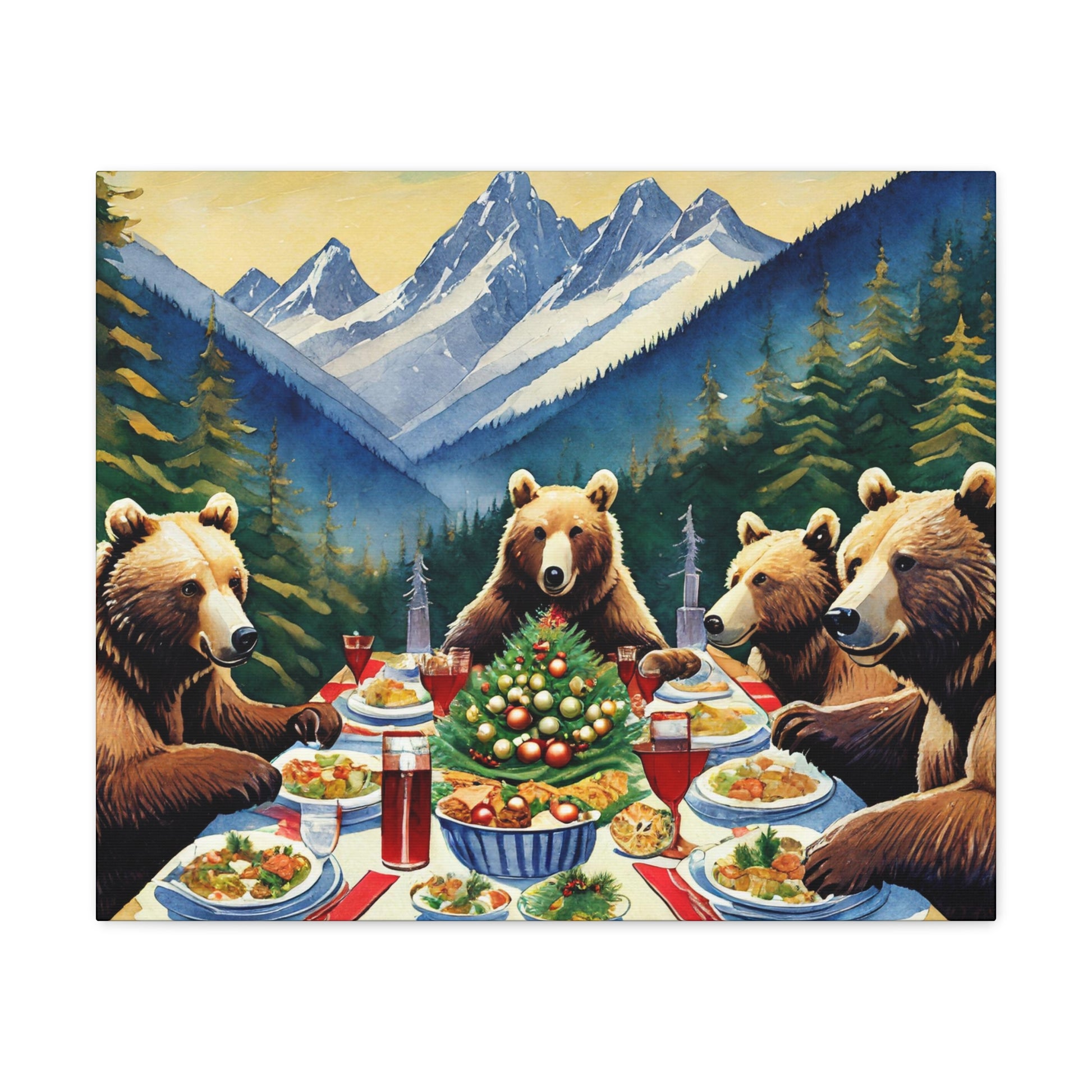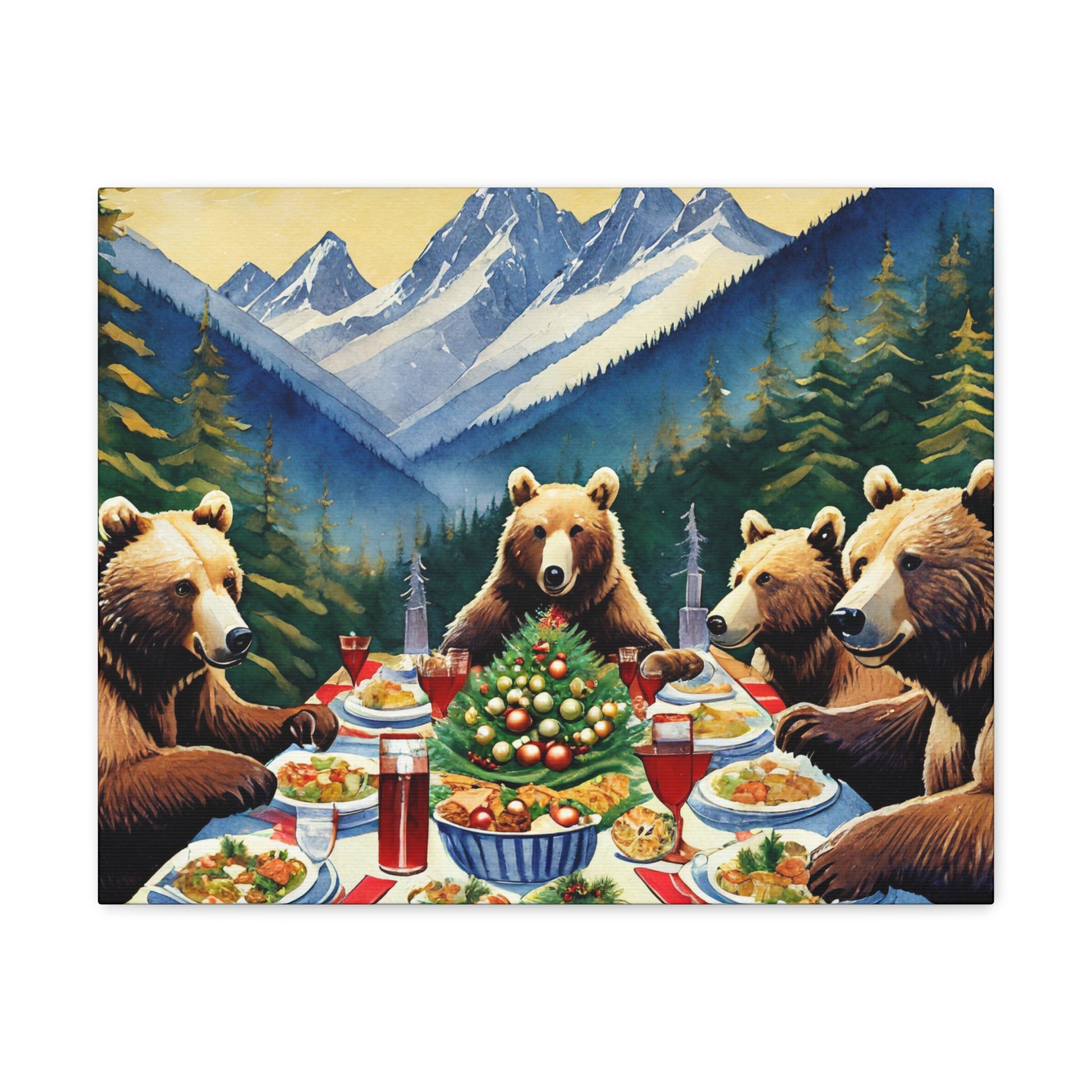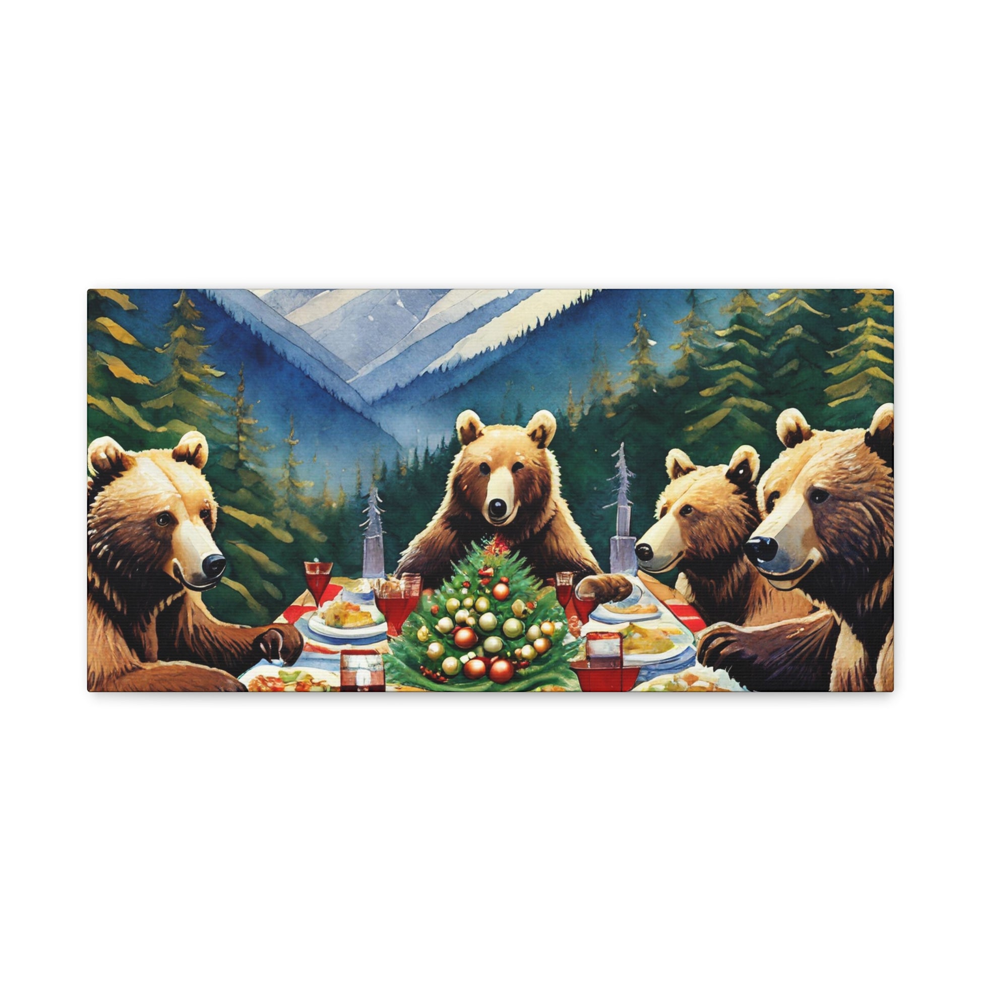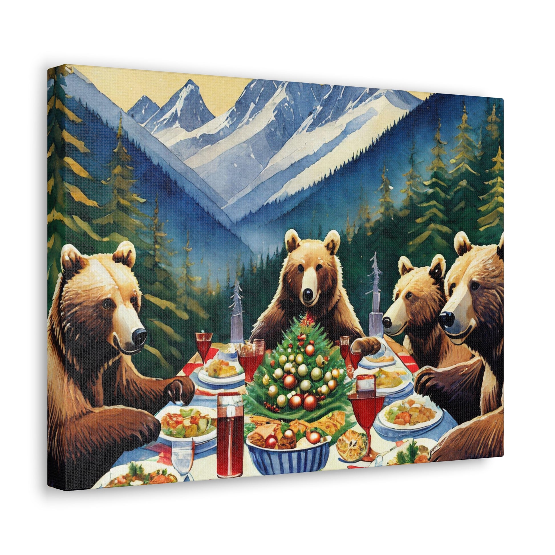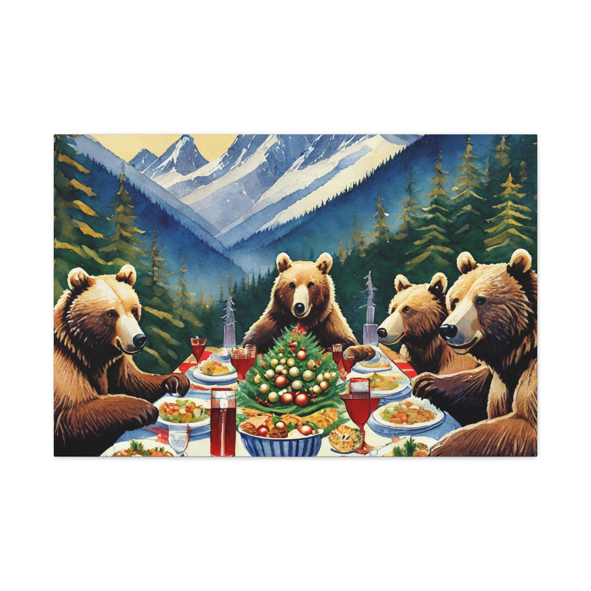 Grizzly Bear Christmas Dinner Canvas Wrap