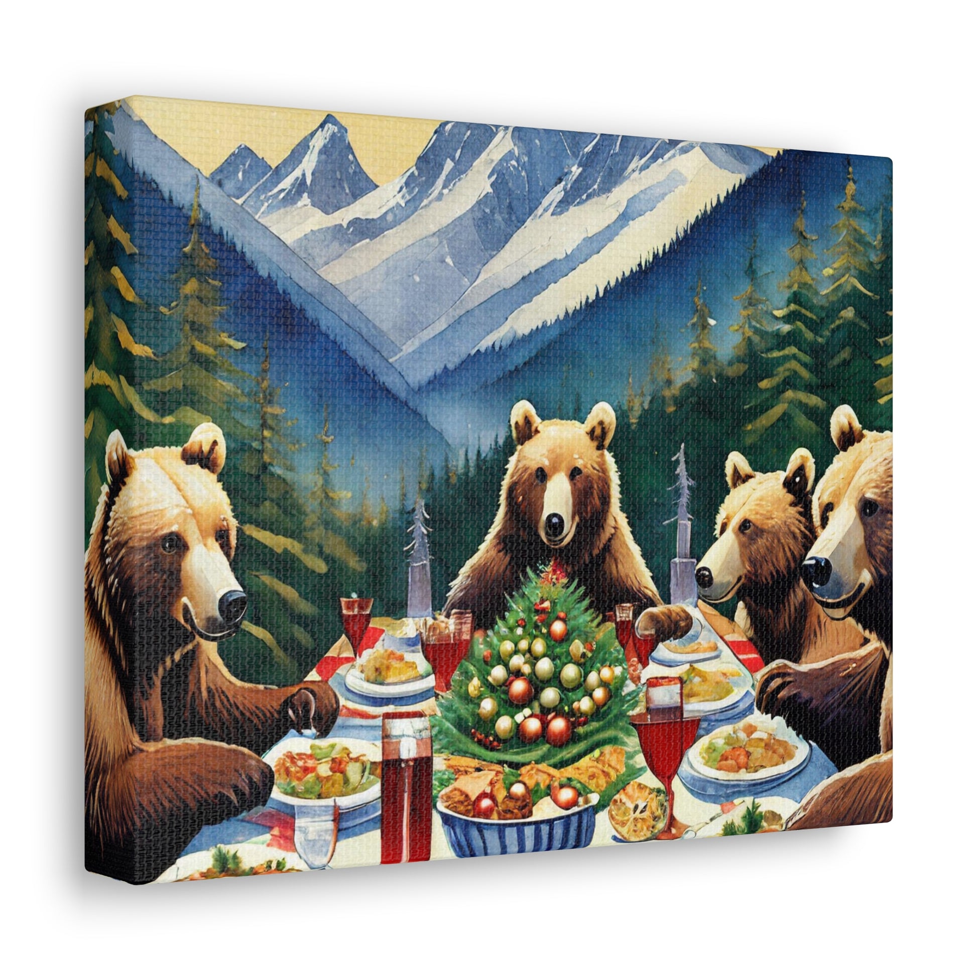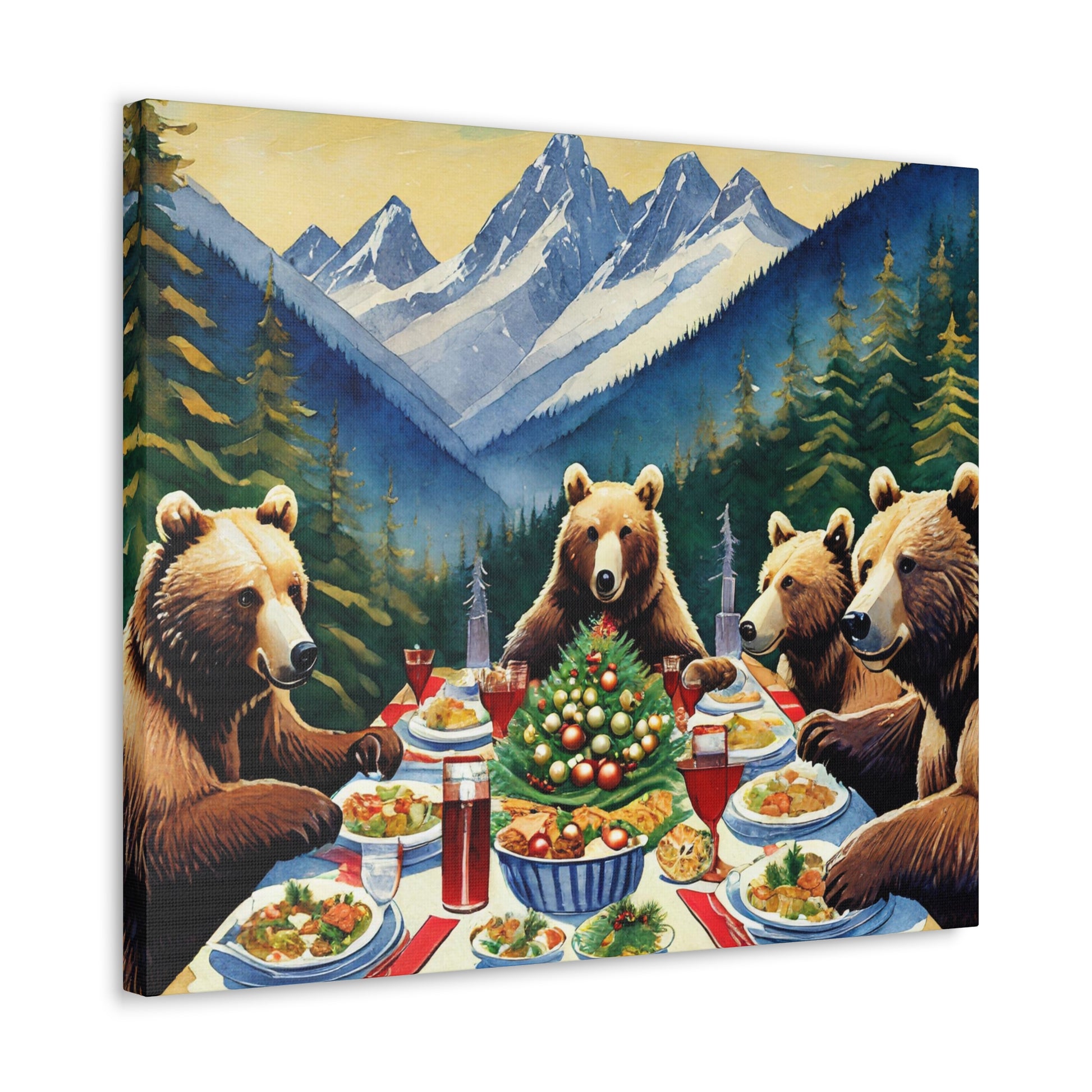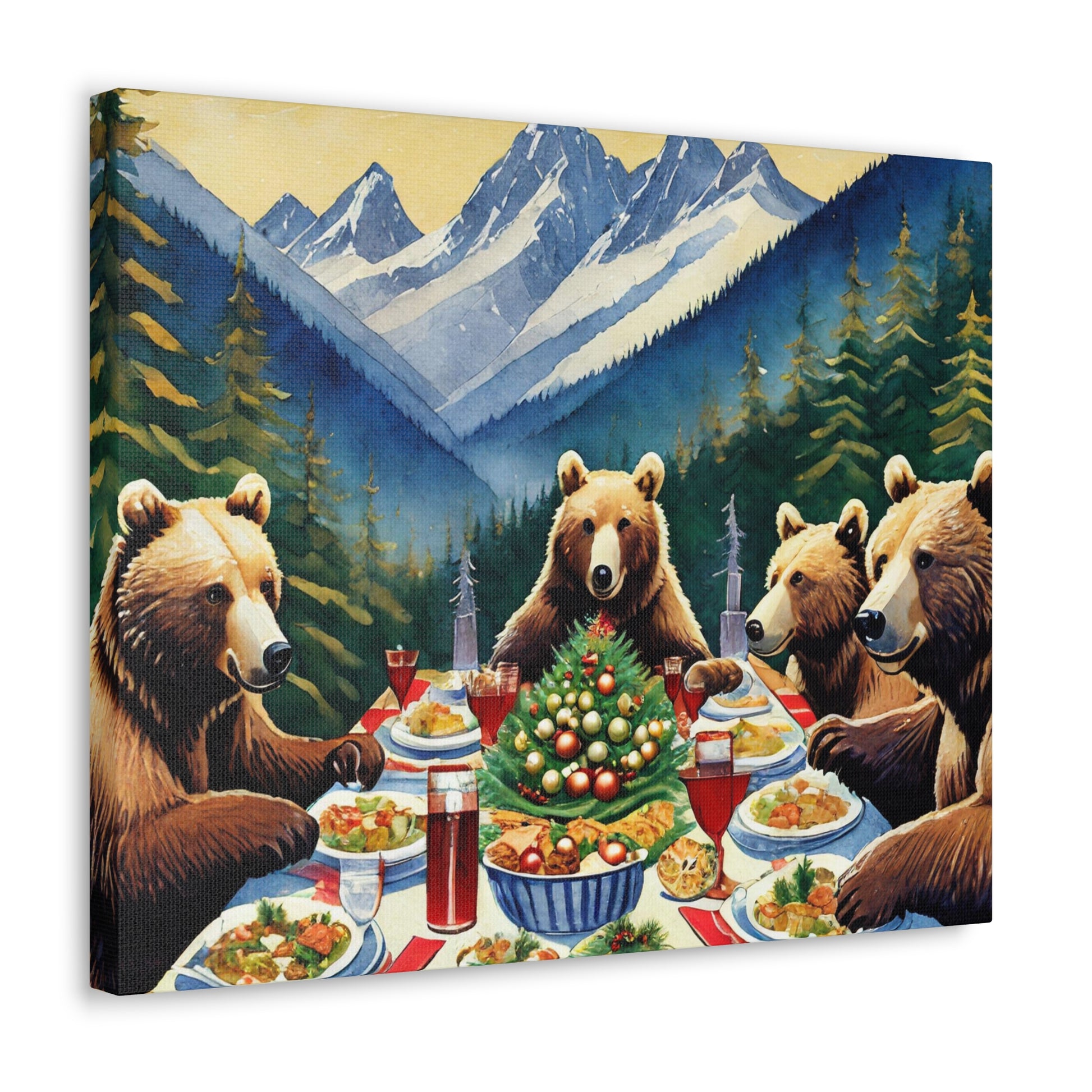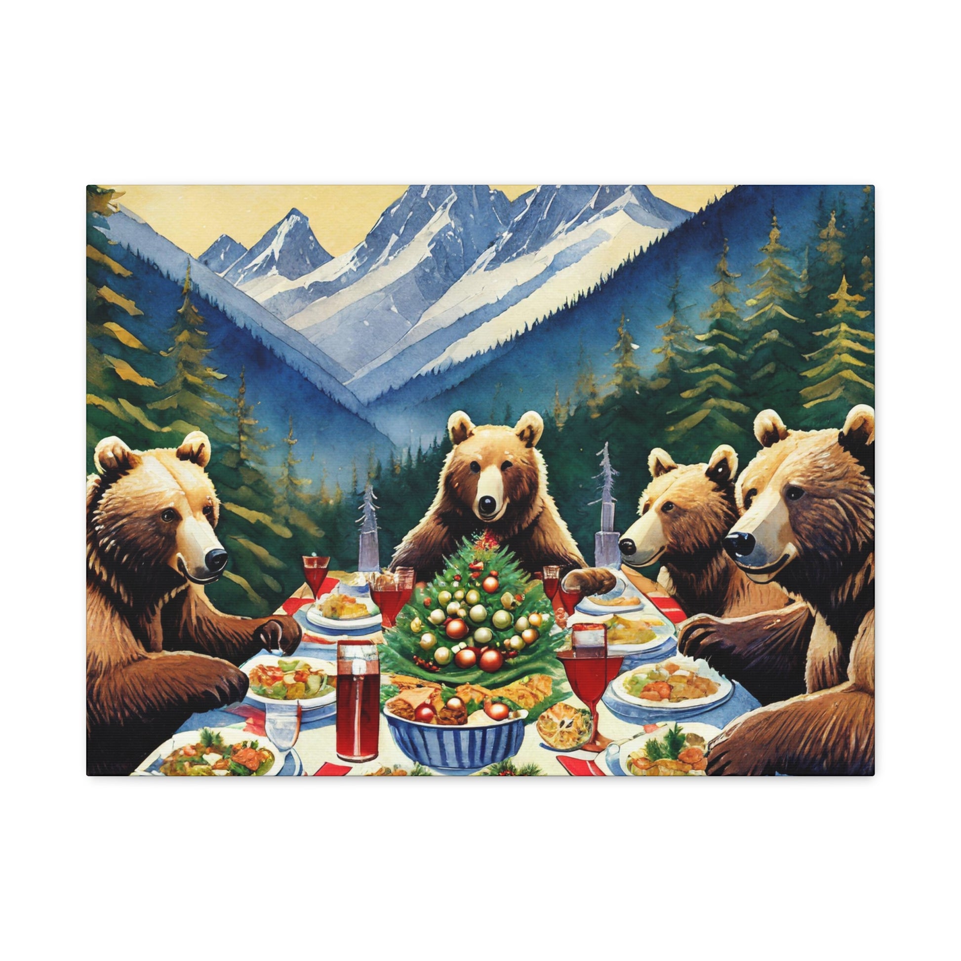 Grizzly Bear Christmas Dinner Canvas Wrap