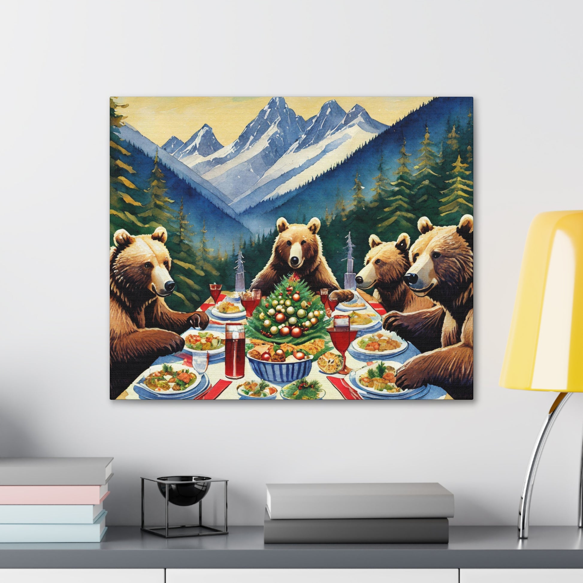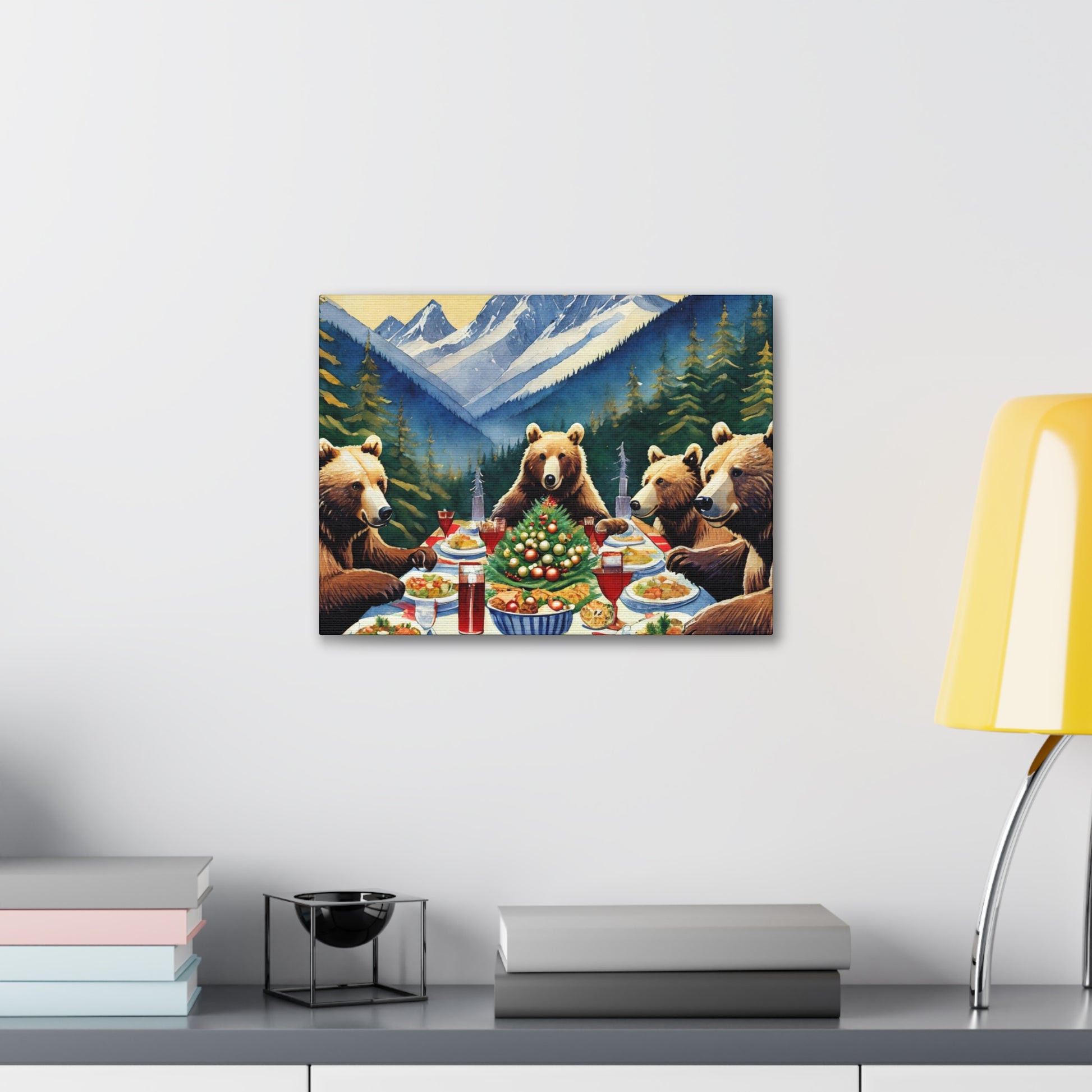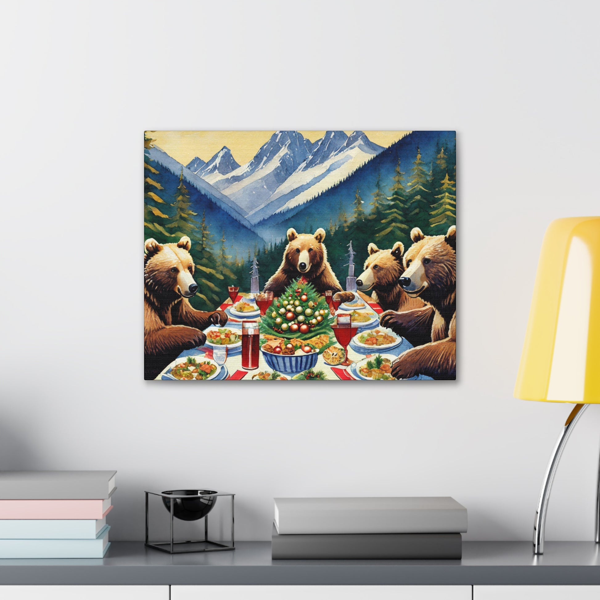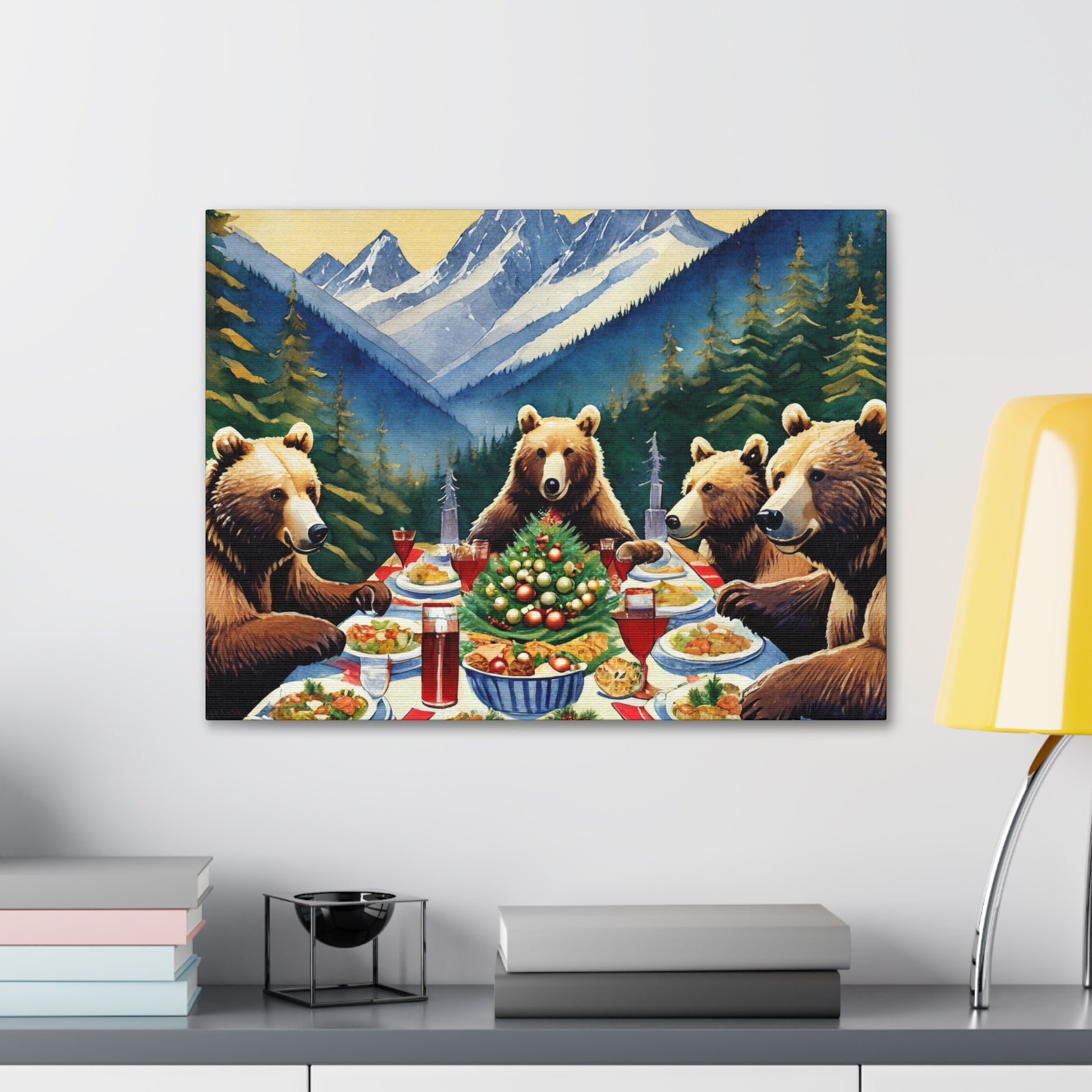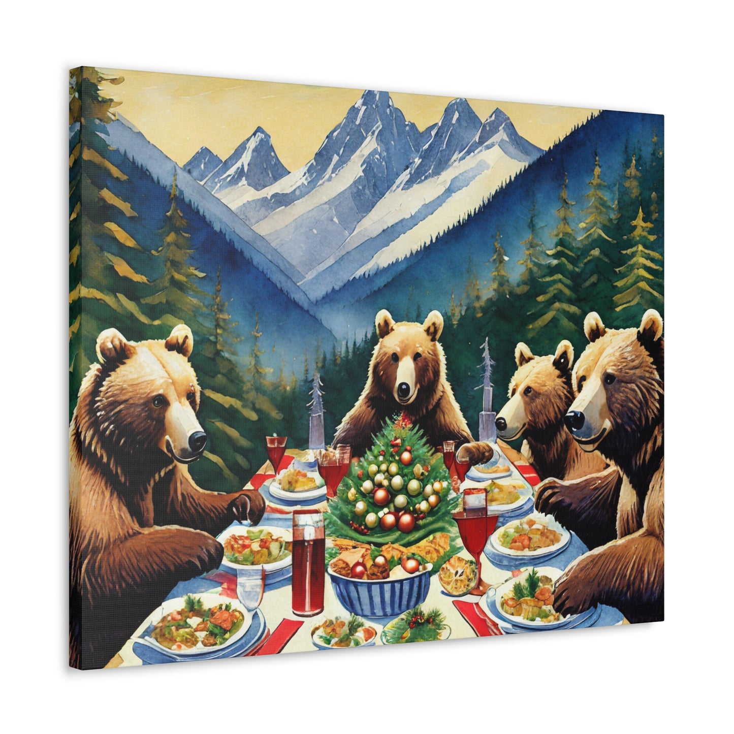 Grizzly Bear Christmas Dinner Canvas Wrap
