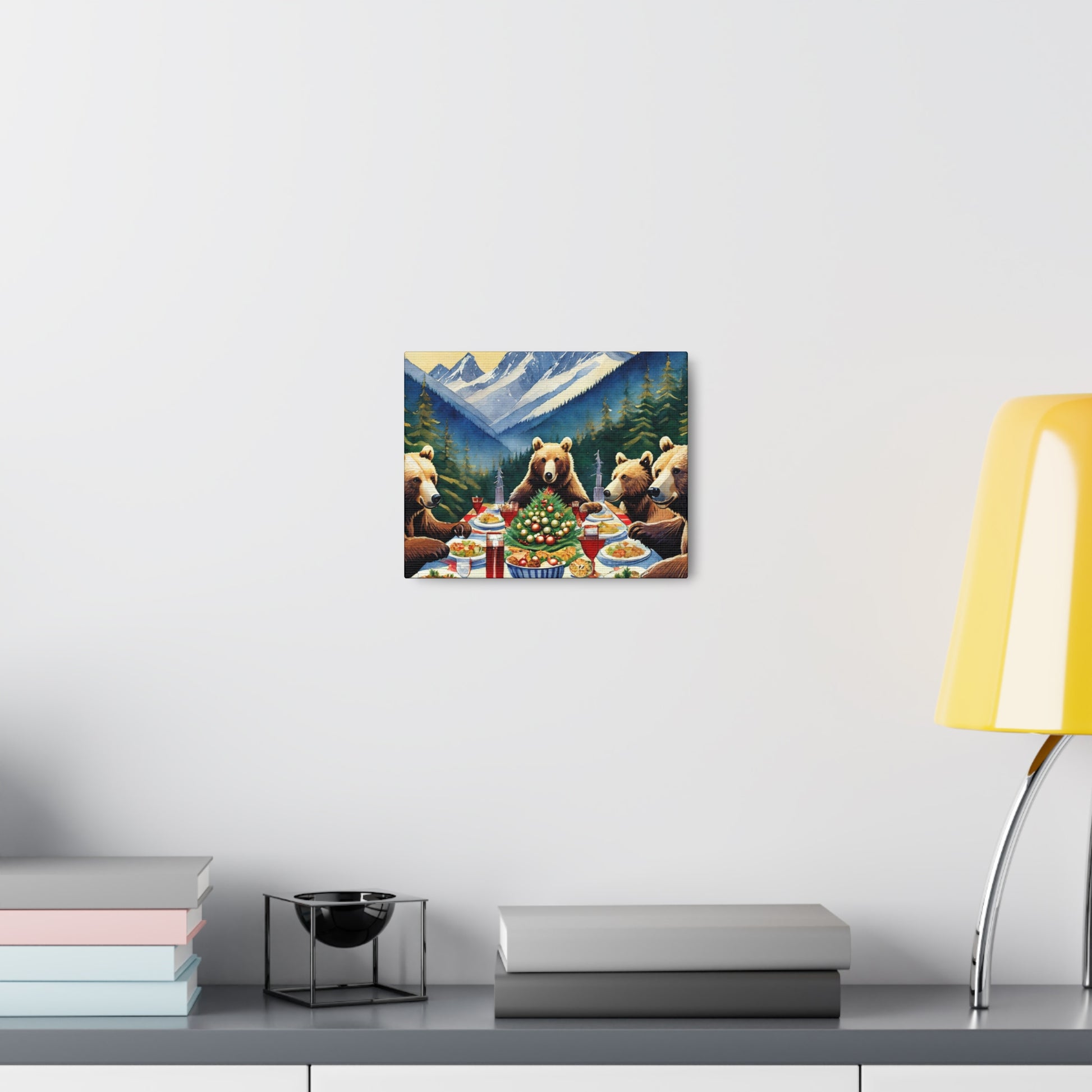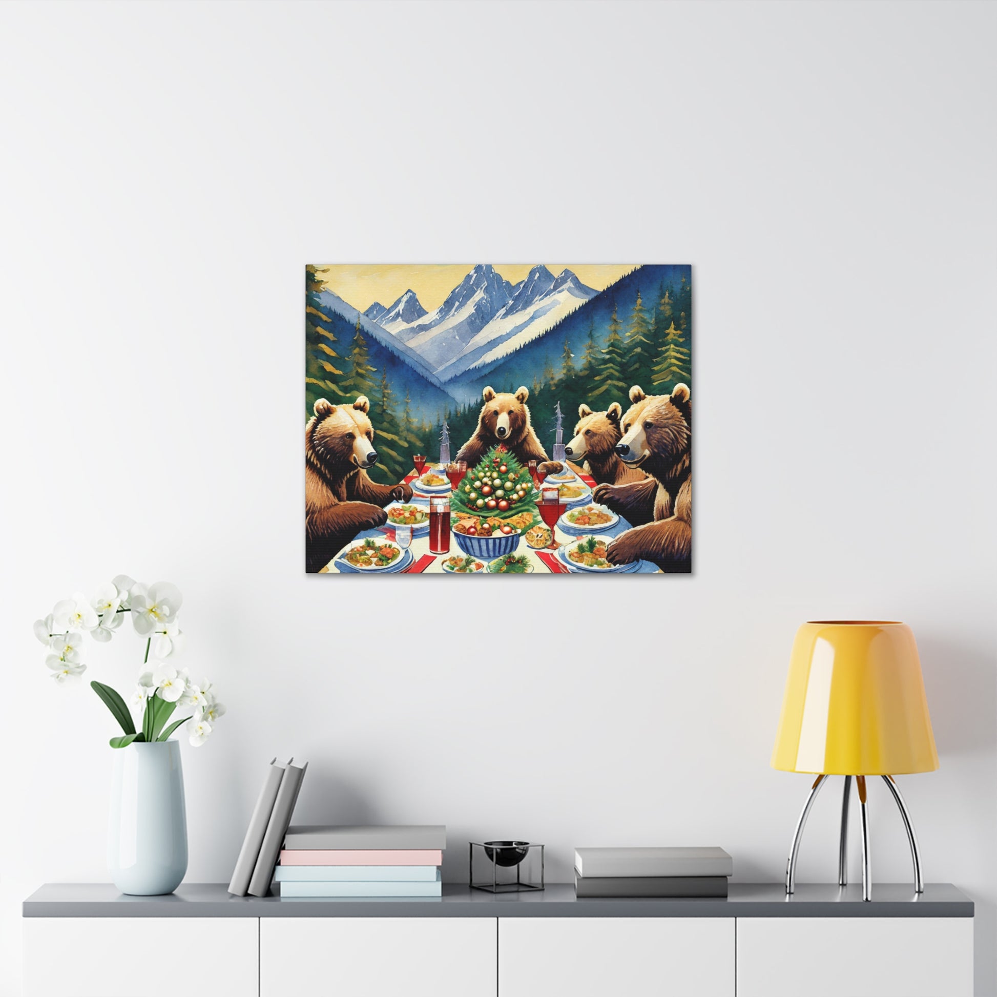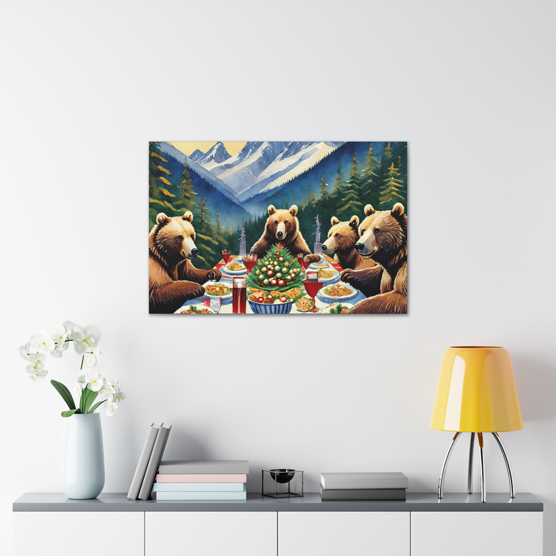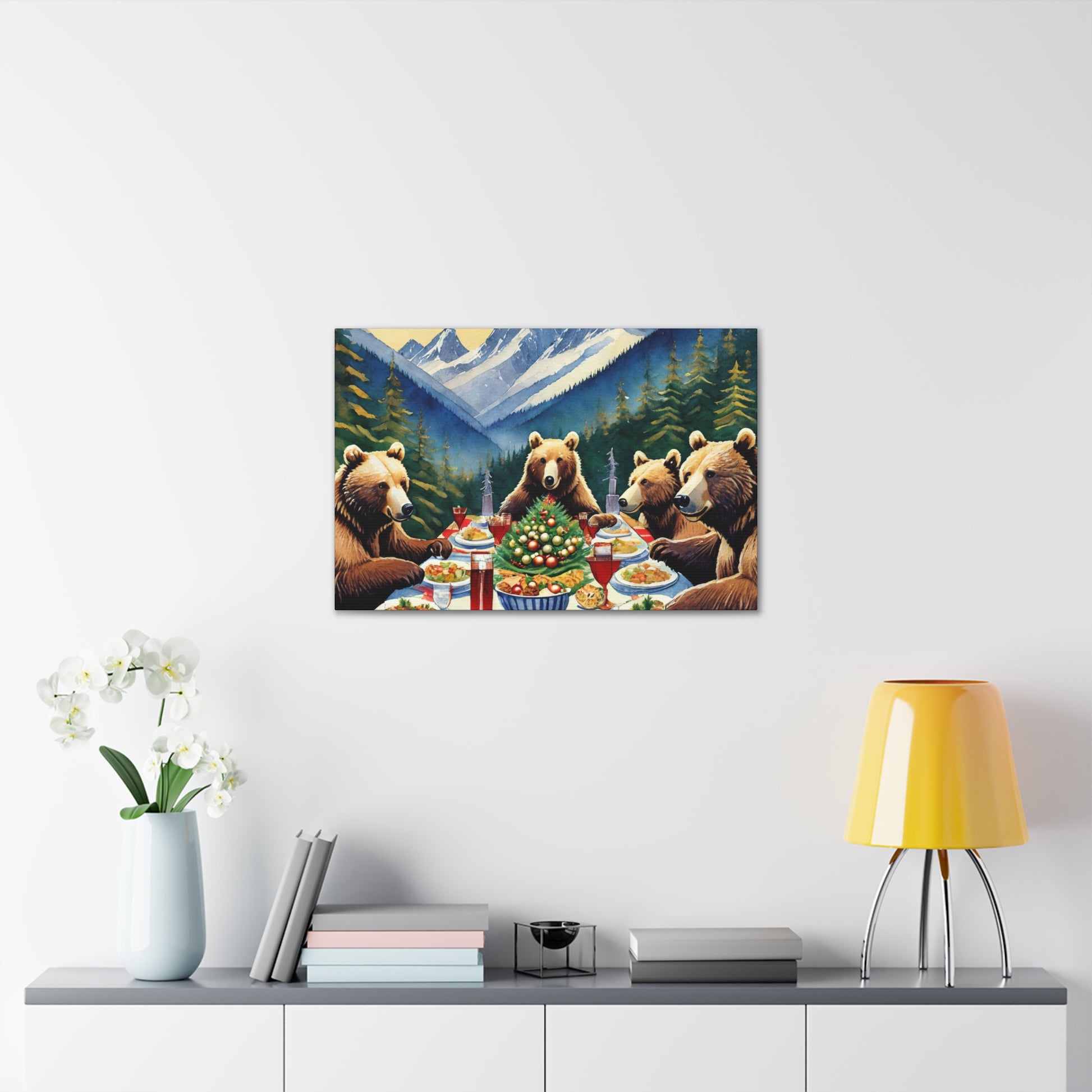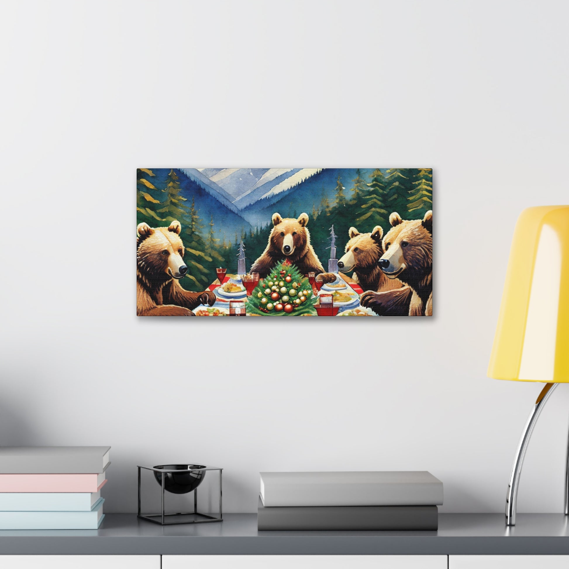 Grizzly Bear Christmas Dinner Canvas Wrap