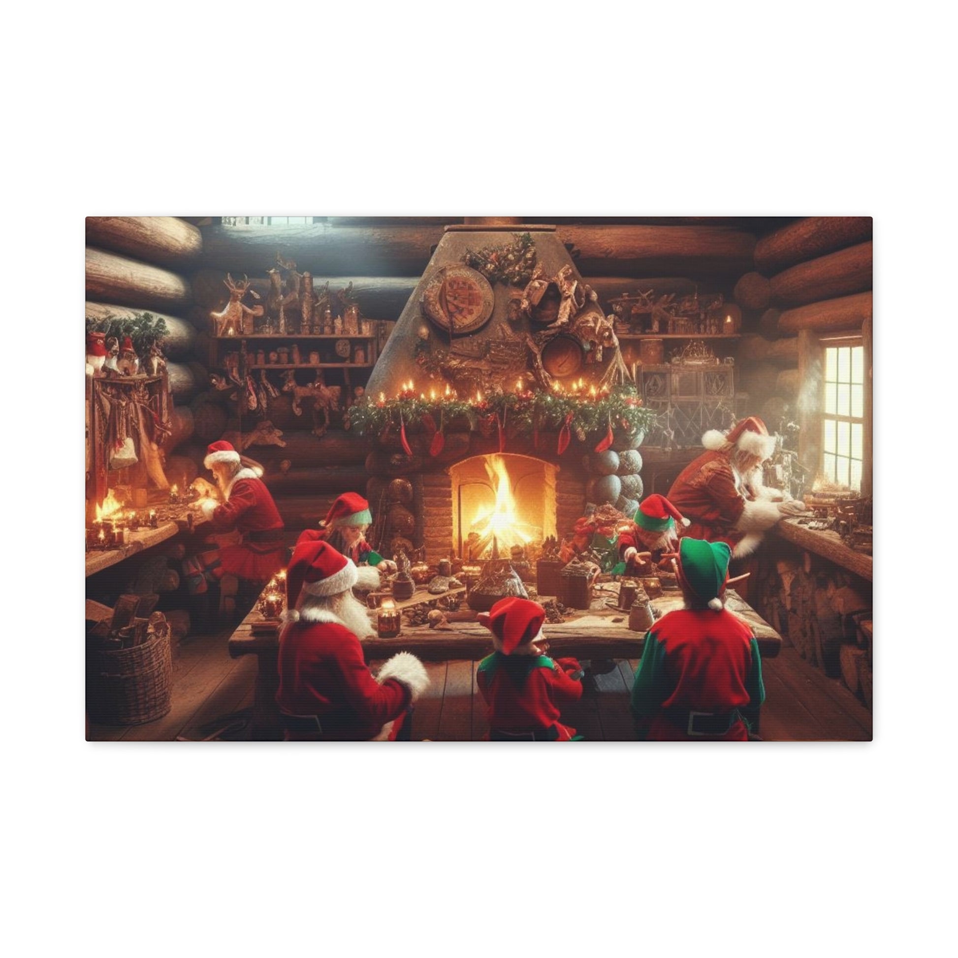 Santa's Workshop Canvas Wrap. Each wrap is made with finely textured, artist-grade cotton substrate which helps reproduce your image in outstanding clarity and detail. Available in multiple sizes, these closed back canvases are built with a patented, solid support face and are excellent for indoor use.