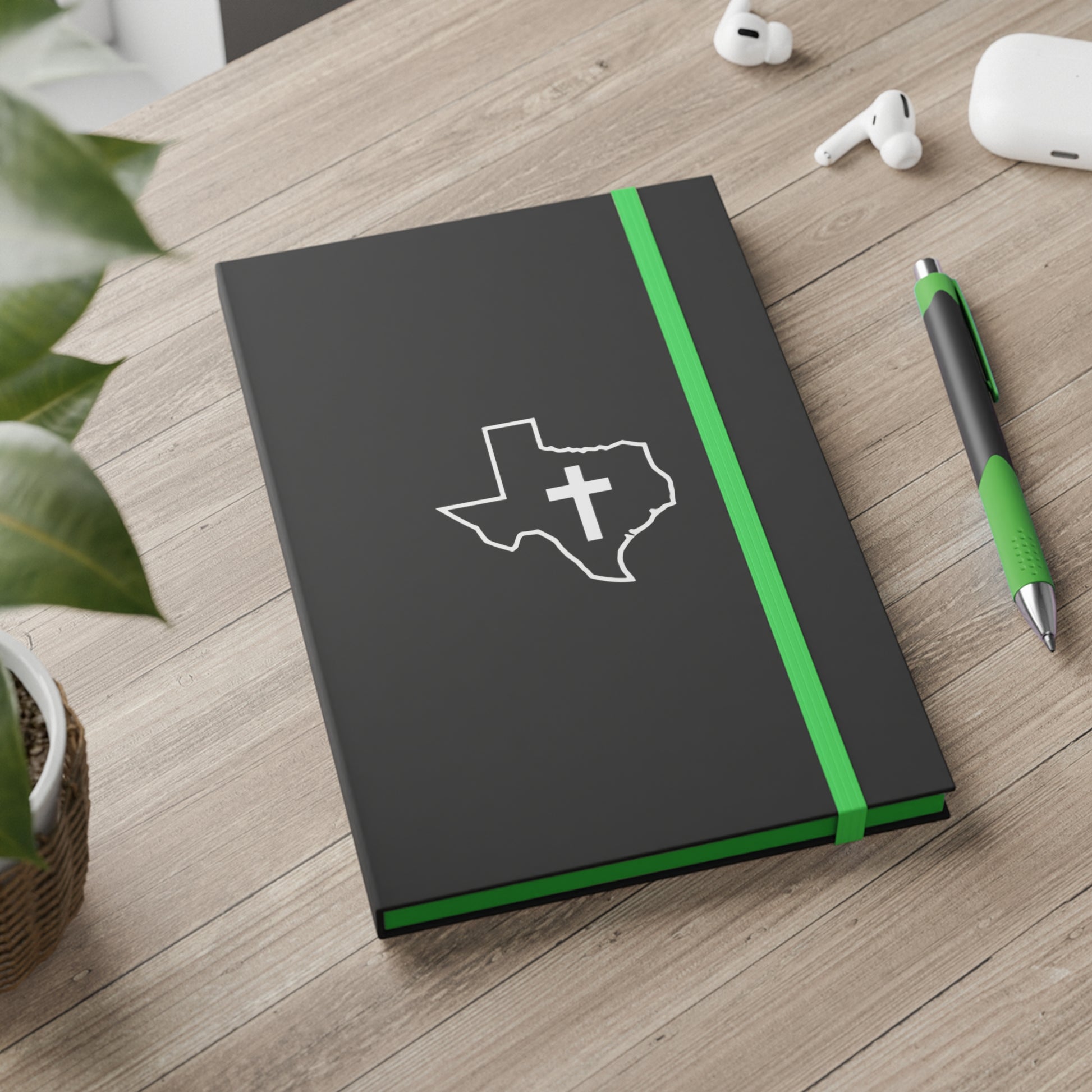 Christian Texas Notebook. Each notebook features 96 off-white ruled pages, a blind deboss brand imprint, and smooth, matte-black covers. They come in one size: 5.5" × 8.25" (14cm x 21cm).